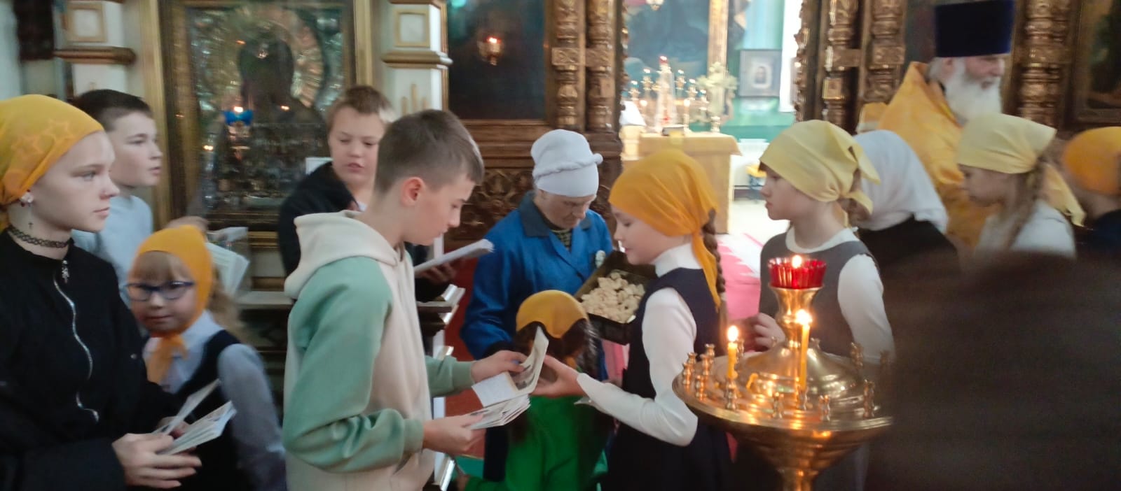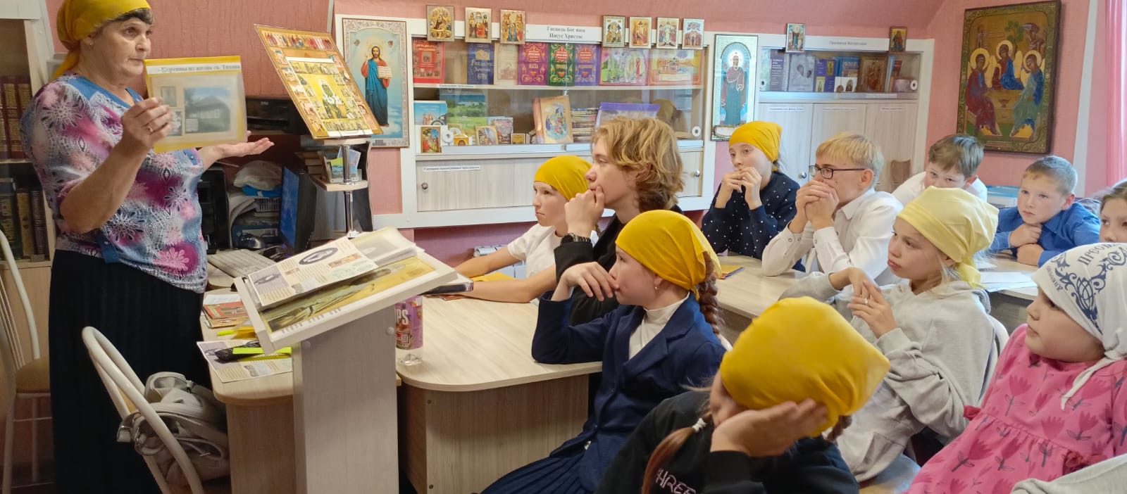 После литургии, трапезы и уроков по Закону Божию Любовь Владимировна Бессонова провела классный час “Патриарх Тихон”.