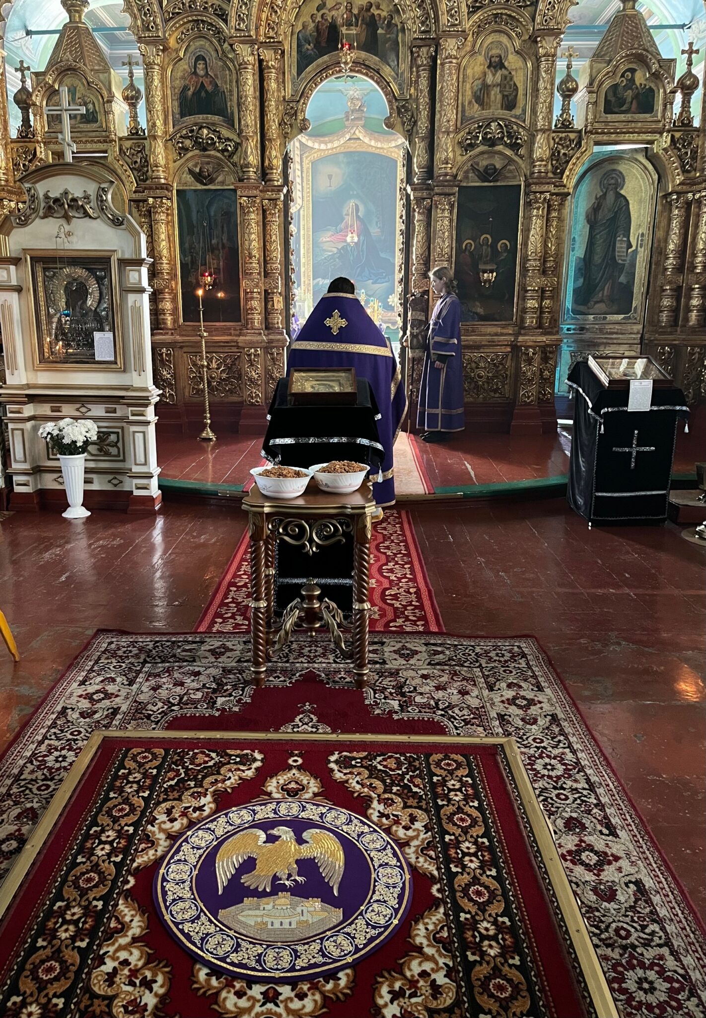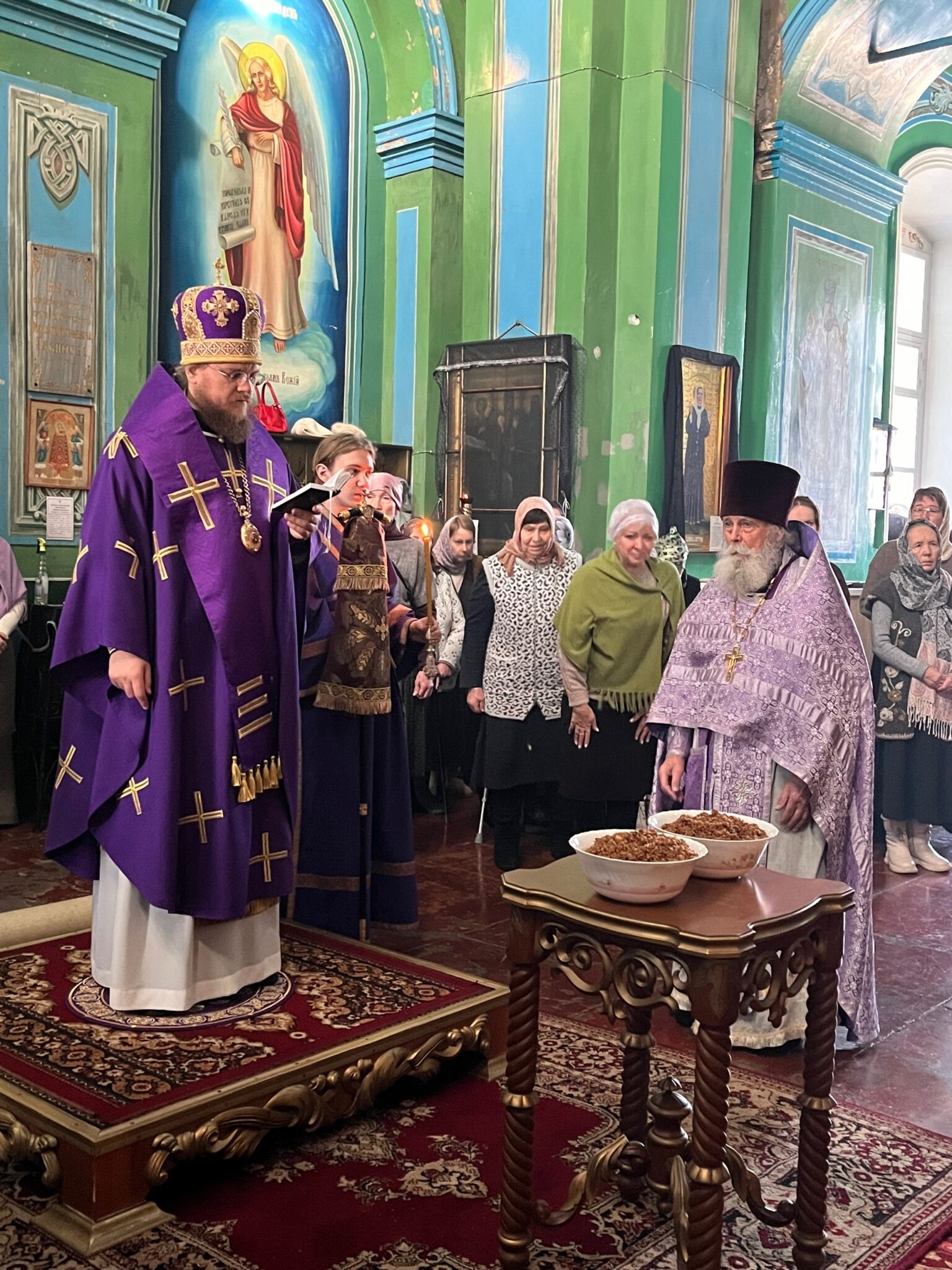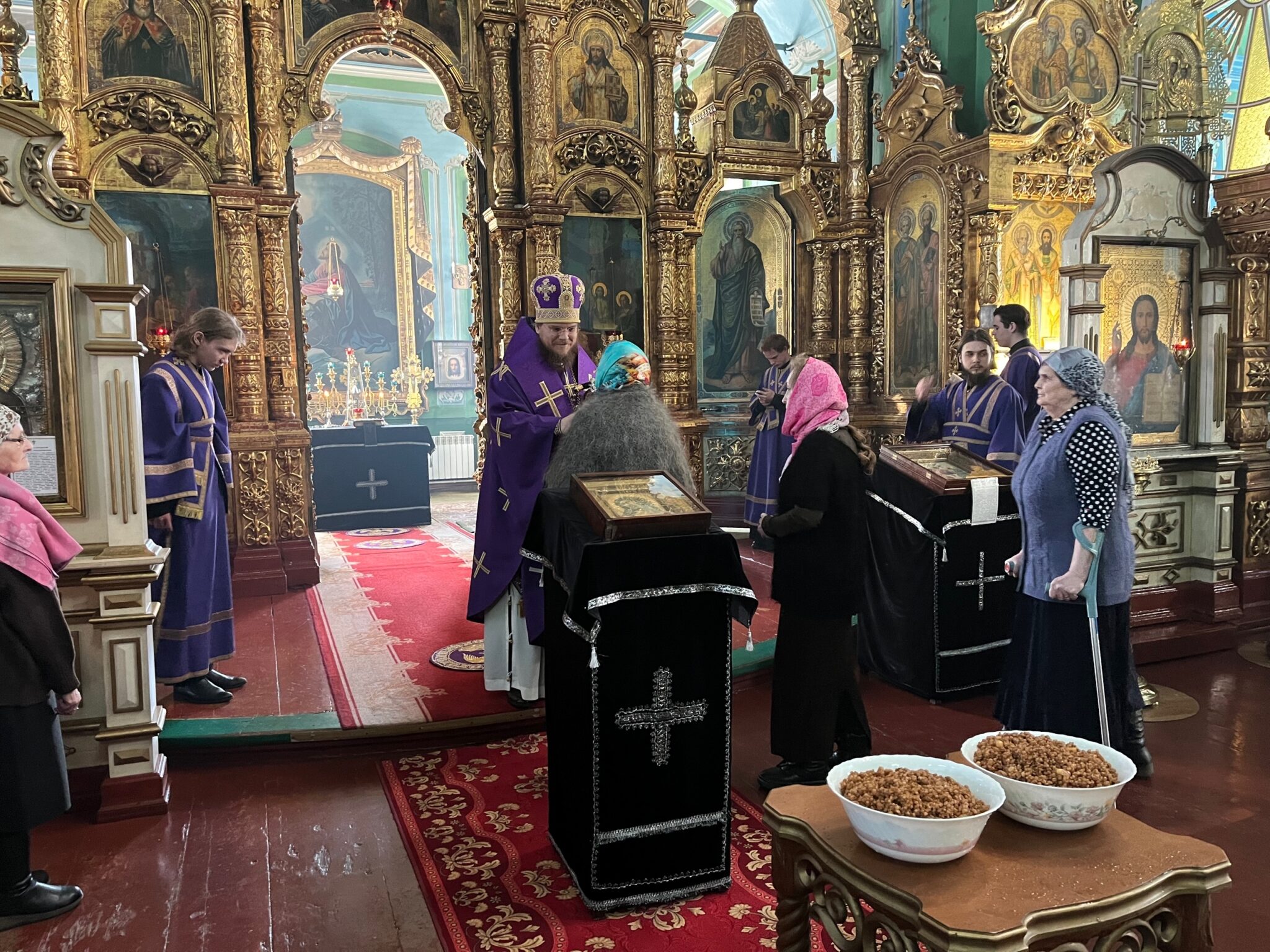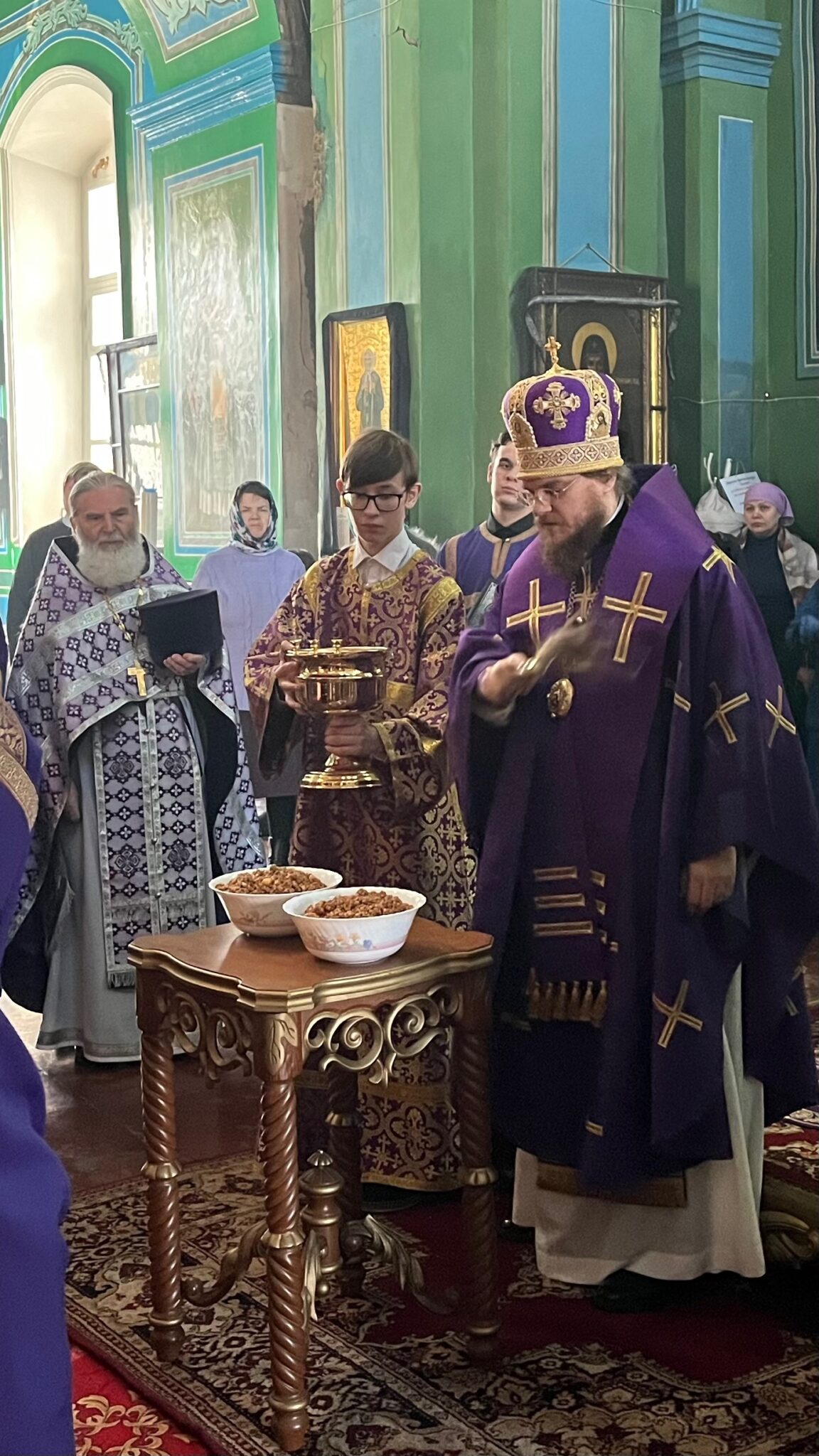 По окончании литургии было совершено чтение канона великомученику Феодору Тирону и освящено коливо, которое после целования креста было роздано прихожанам.