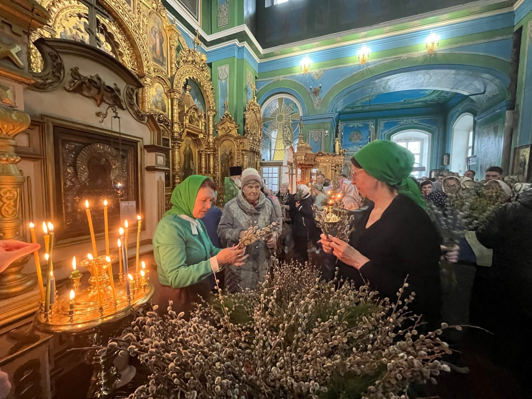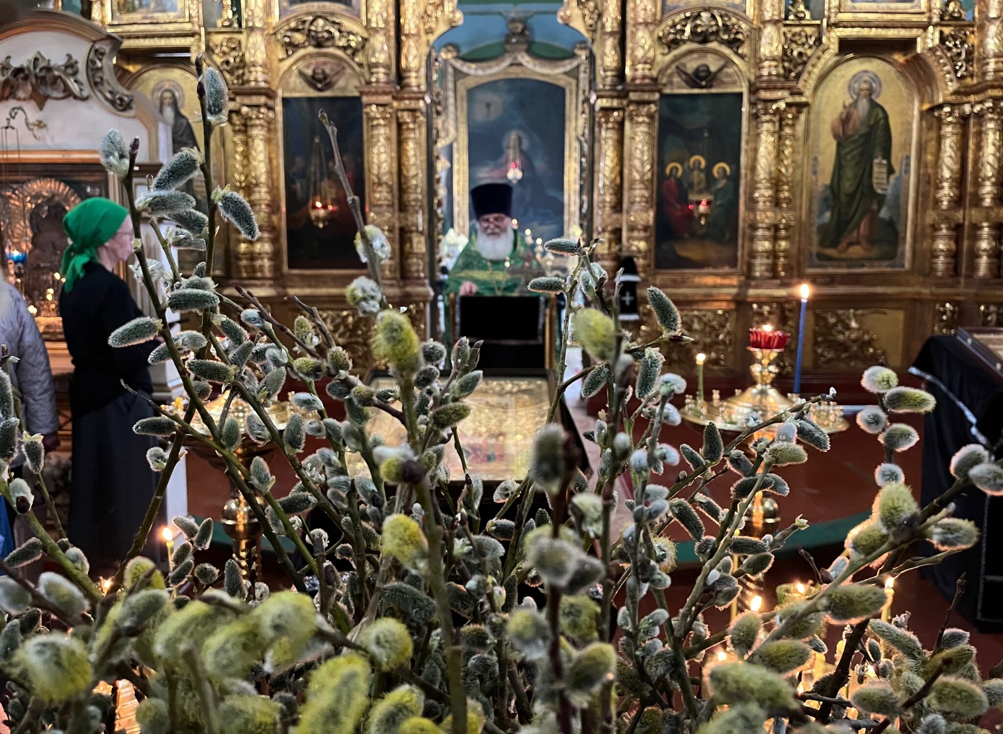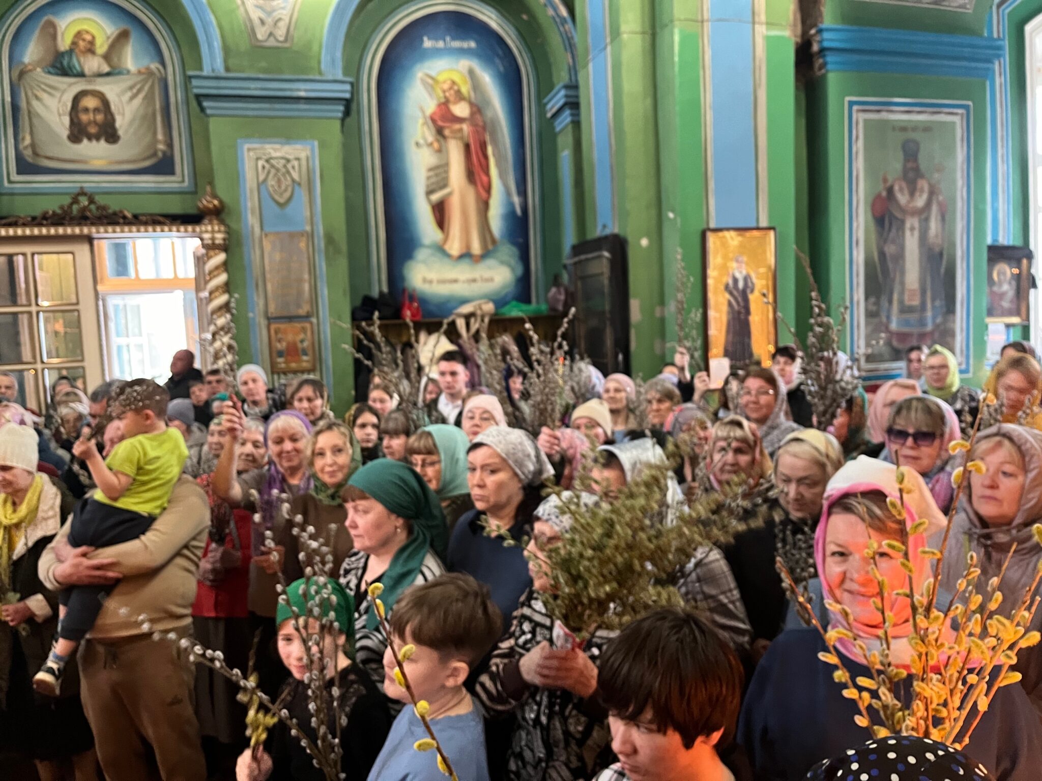 По окончании праздничной Божественной Литургии протоиерей Николай провел чин освящение вербы, верующие принесли веточки вербы как знак встречи Христа и за тем он обратился к собравшимся с архипастырским словом и благословил всех присутствующих.