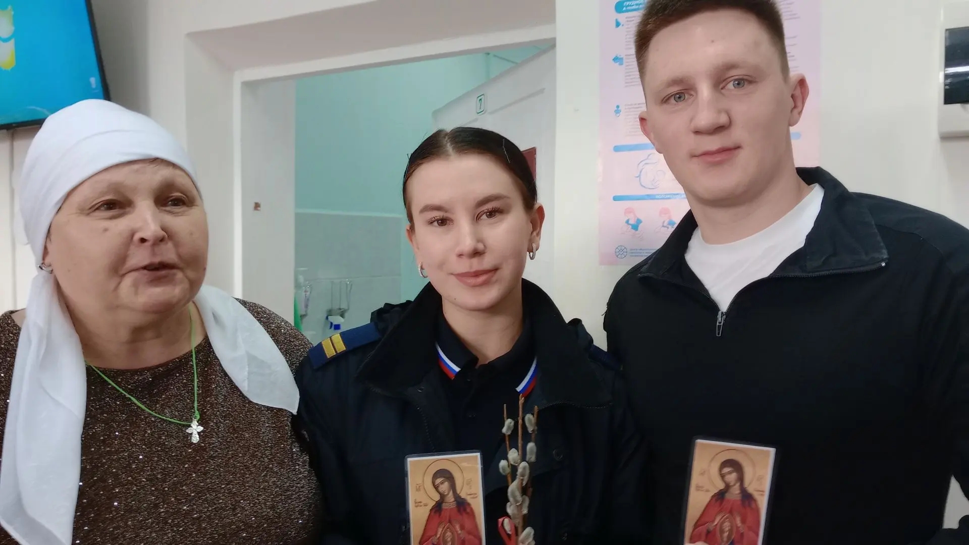 С пожеланиями, чтобы все мамы и младенцы были здоровы и благополучны, под защитой Сил Небесных и под опекой медиков, добровольцы подарили всем участникам акции: присутствующим и медицинскому персоналу иконочки «Благовещение Пресвятой Богородицы», будущим матерям – иконочки «Помощница в родах». Освященные веточки весенних пушистых верб также порадовали собравшихся!..
