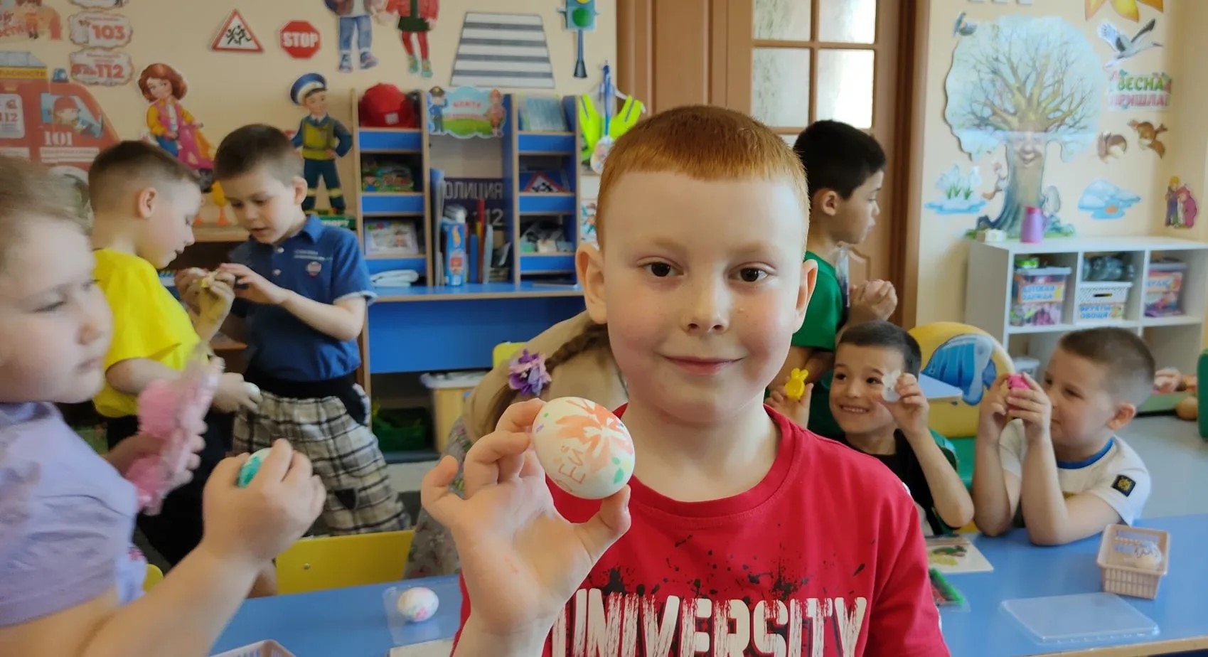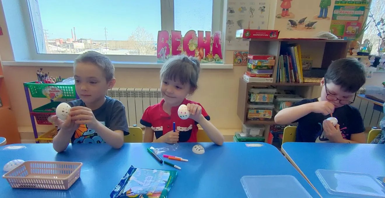 В день Светлой Седмицы пасхальная радость не покидала нас ни на одно мгновение во время радушной встречи с дружными возгласами: «Христос воскресе!» и «Воистину воскресе!» во время беседы с детьми о Пасхе и Свято-Троицком храме. Ребята подготовительных к школе групп увлеченно и с воодушевлением раскрашивали пасхальные яйца, используя принесенные нами специальные художественные трафареты для каждого ребенка. Самостоятельная работа, необычные материалы, выбор цвета и всеобщая атмосфера радости и единения – все это доставило ребятишкам массу самых положительных эмоций и восторга!