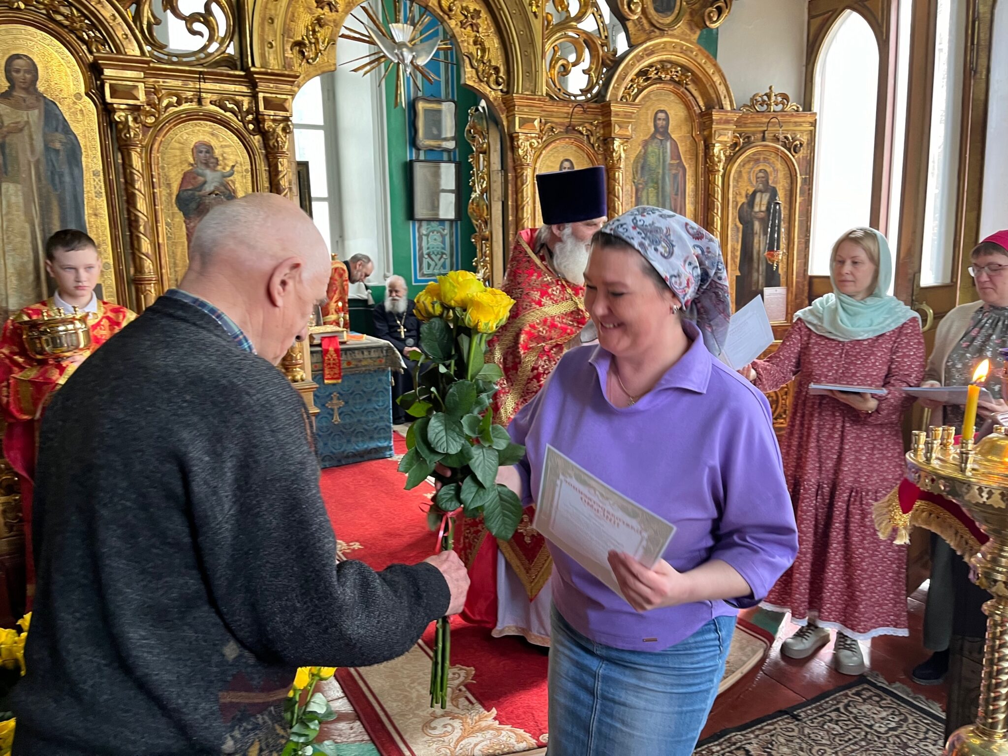 Протоиерей Николай поздравил всех с праздником святых жен-мироносиц и вручил благодарственные письма прихожанкам за верность в исполнении послушания.