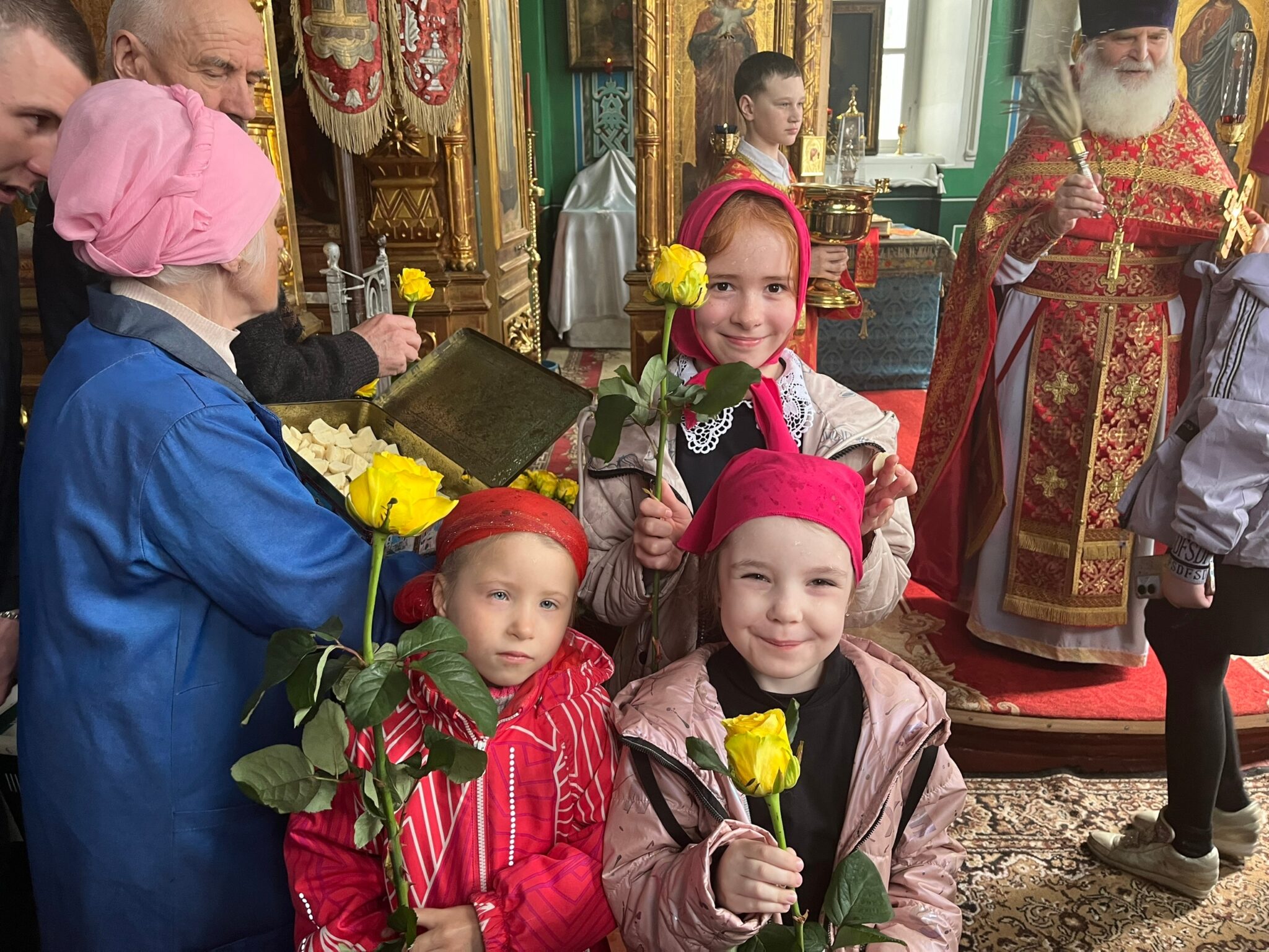 Все прихожанки сегодня получили розы и были окроплены святой водой!
